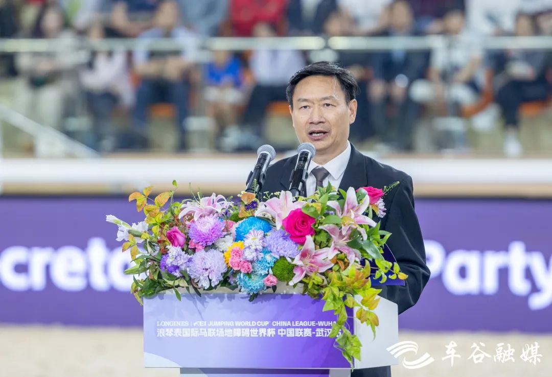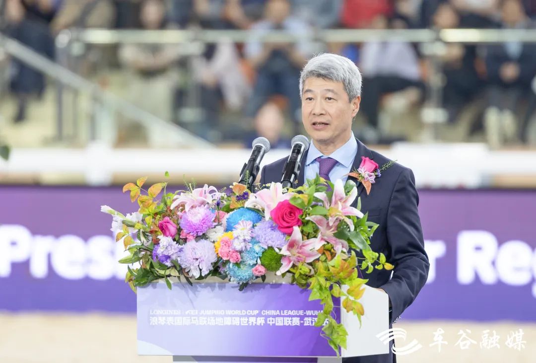 国际马联副主席、国际马联第八区主席黄启芳,中国马术协会秘书长钟国伟,湖北省体育局局长水兵,武汉市委常委、武汉经开区工委书记刘子清,武汉市政府副市长孟晖,武汉商学院党委书记孟武康,武汉商学院校长彭瑜,武汉市体育局局长雷利军,浪琴表中国区副总裁解琦,北京市马术运动协会主席刘诗来出席开幕式。孟晖宣布比赛正式开幕。