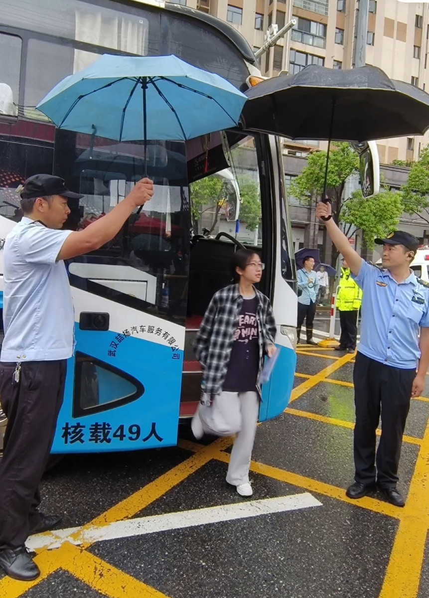 “这两天雨太大了,得早点到路口疏导交通。”6月21日,连续10多年参加护考的区交通大队民警姚明提前来到武汉经开区一中考点。三角湖路博学路路口,车流不多。他走进江汉大学,提前疏导交通,引导送考车辆有序停车。“让送考车辆停在大学校园是便民举措,校园内部停车压力陡增。只有把工作做到前面,我们才能把好事办好。”