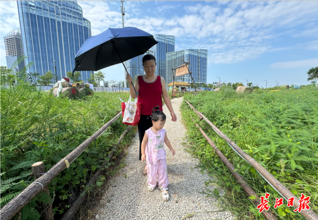 7月28日,记者来到星空农场,农场位于武汉经开区大半岛后官湖岸边。家住联投半岛小区的胡正仙带着小孙女路过,“以前这里都是荒地,什么都没有,现在环境大变样了!”