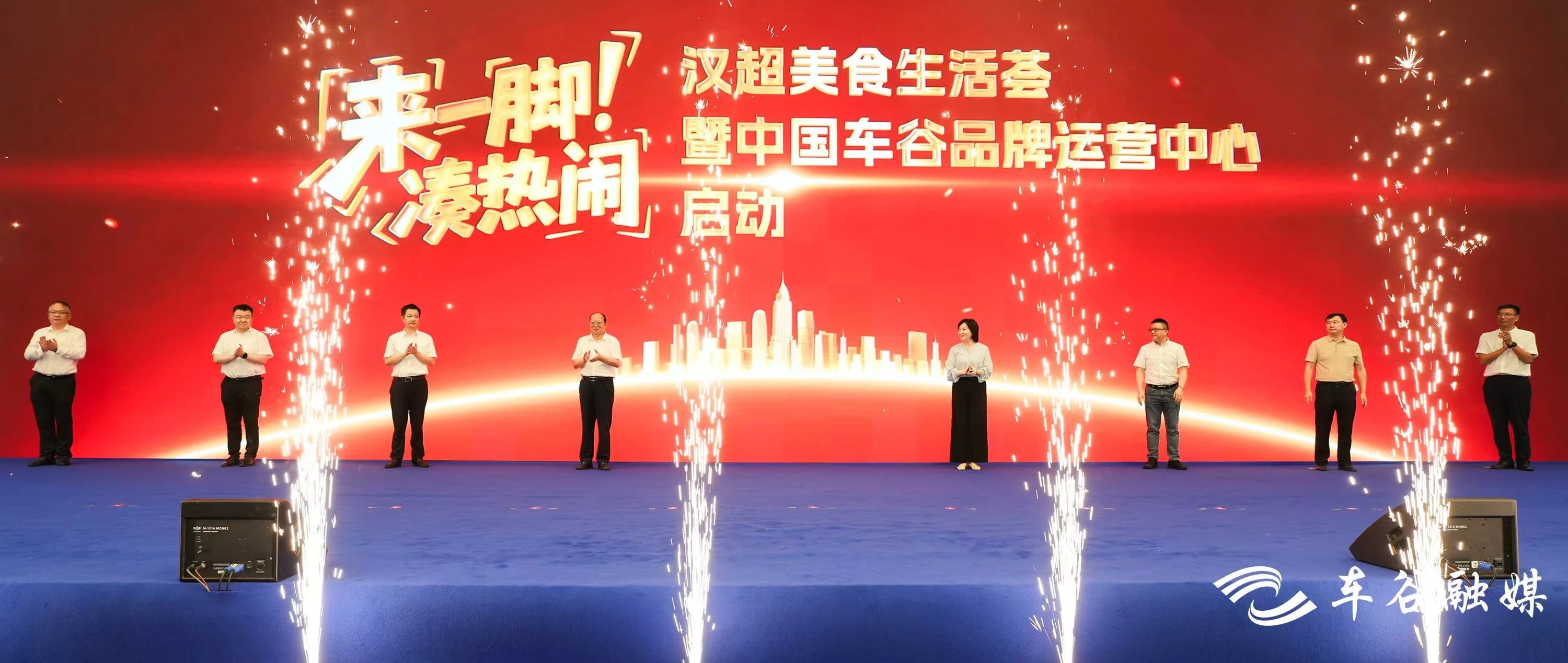 刘子清、李晓燕、雷利军、唐超、刘亮、张俊、潘洪祥、赵颖伟共同启动“来一脚·凑热闹”汉超美食生活荟,见证中国车谷品牌运营中心开业。