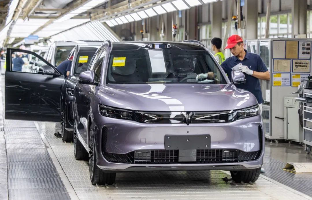 调研组一路穿行车间。耳边,机械马达低鸣声与气动工具嘶鸣声此起彼伏;眼前,935台工业机器人协同作业,一辆辆岚图新车在“空中走廊”缓缓滑行。百米外的停车场内,反射着蓝金色光芒,搭载华为乾崑智驾的“车谷造”奔赴远方。