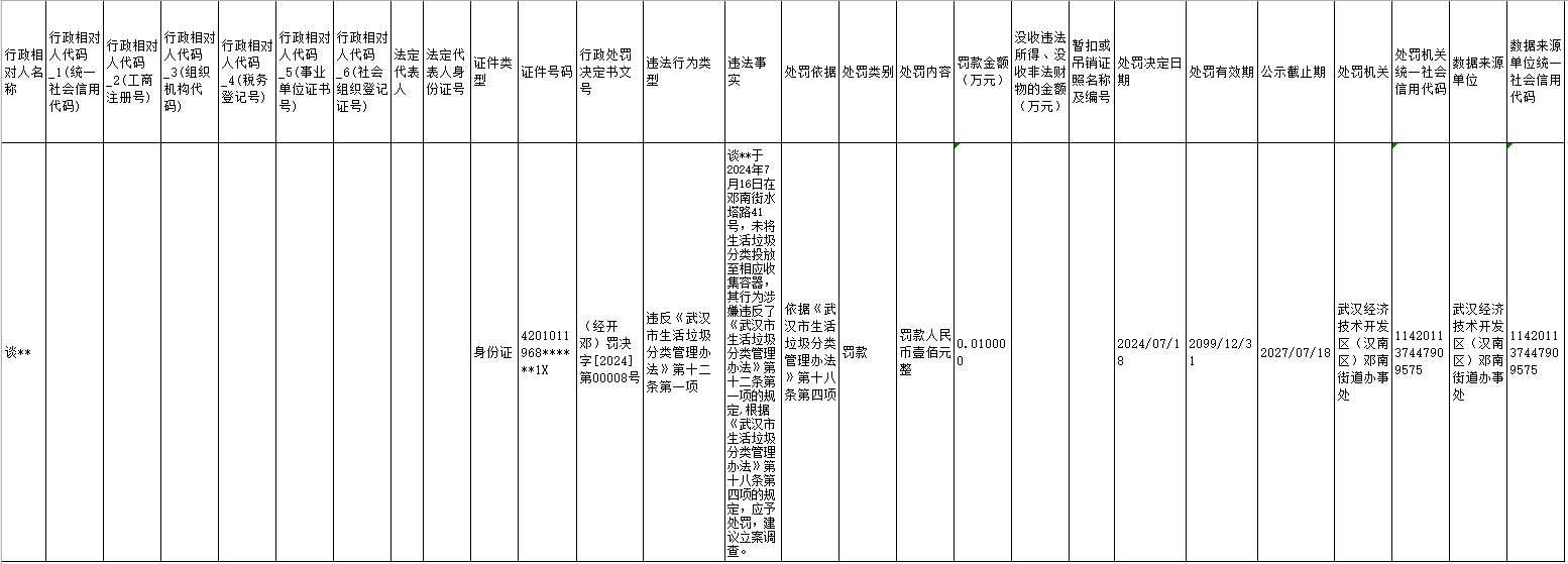 对未将生活垃圾分类投放至相应收集容器的处罚(谈某某)