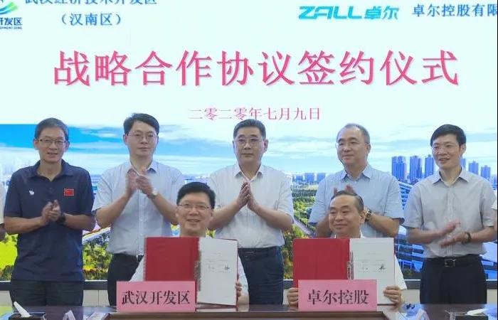 7月9日,武汉开发区与卓尔控股有限公司签署战略合作协议,双方将共同携手在武汉开发区建设经开临港新城、智能供应链产业园、航空产业园等项目,项目总投资达200亿元。市委常委、武汉开发区工委书记、汉南区委书记彭浩,卓尔控股董事长阎志出席签约仪式。