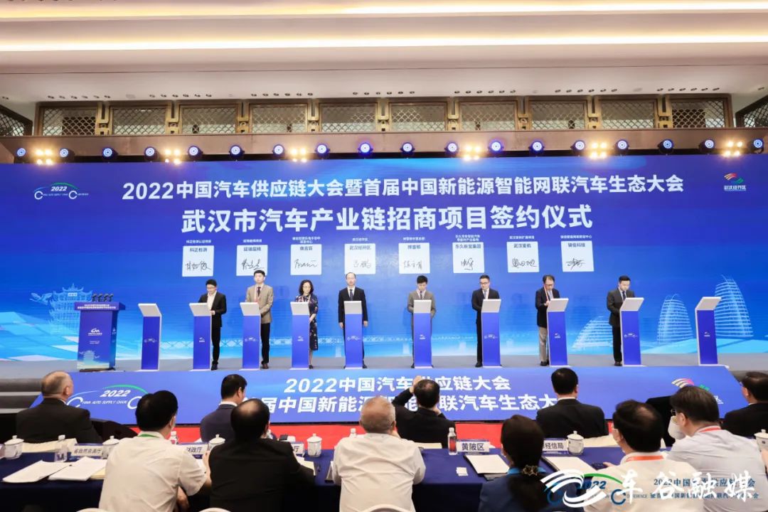 6月28日,在2022年中国汽车供应链大会暨首届中国新能源智能网联汽车生态大会开幕式上,56个武汉市汽车产业链招商项目签约,签约金额1120.23亿元。