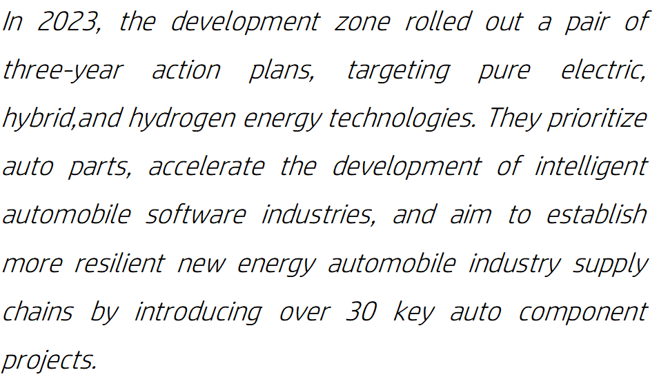 2023年,武汉经开区连续出台两个三年行动方案,以纯电动、混合动力和氢能技术为目标,引入30多个关键汽车零部件项目,加速发展智能汽车软件产业,建立更具韧性的新能源汽车产业供应链。