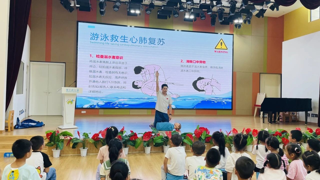 寓教于乐,强化教育。万家湖社区联合辖区内开发区二中、沌口幼儿园开展了“珍爱生命 预防溺水”安全主题宣教讲座,工作人员用通俗易懂的语言结合PPT课件的形式,通过讲故事的方式引用一些真实案例,向同学们重点讲述了溺水的危害,帮助同学们提高安全意识,远离危险水域,同时还向同学们讲述防溺水知识、传授防溺水安全急救技能,提高同学们的自救能力。