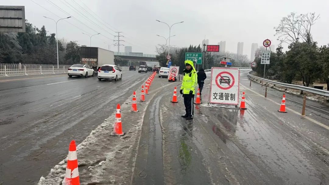 因道路积雪,汉洪高速收费站临时关闭,只允许大货车通行。区交通大队民辅警第一时间对出城车辆耐心开展劝返,连续疏导车辆4300余台次,并联合城管等多部门在路面投撒工业用盐。