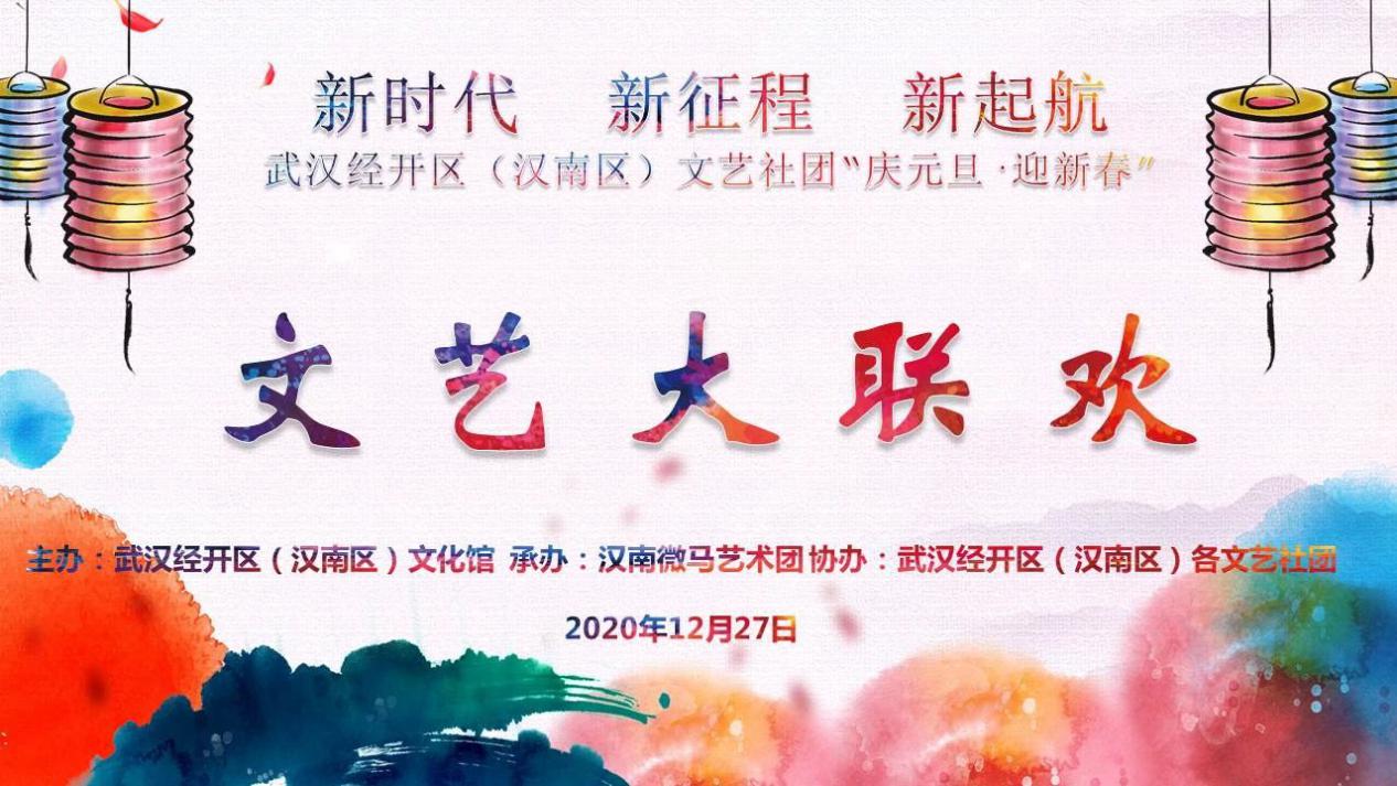 12月27日下午,武汉经开区(汉南区)文艺社区“庆元旦 迎新春”文艺大联欢在南苑宾馆二楼文艺厅举行。来自我区的十余支文化团队和周围群众400余人参加了此次活动。次活动由区文化馆主办,汉南微马艺术团承办,区各文艺社团协办。