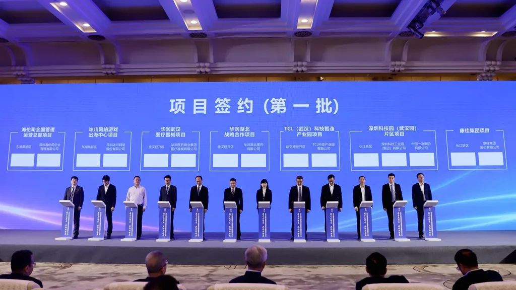 去年5月,2022“英雄武汉 相约鹏城”粤港澳大湾区招商引资推介会在深圳举行,武汉经开区招商城建未来中心二期、广州洁宜集团华中总部及生物科技研发基地、广东福迪武汉基地等项目签约落户。
