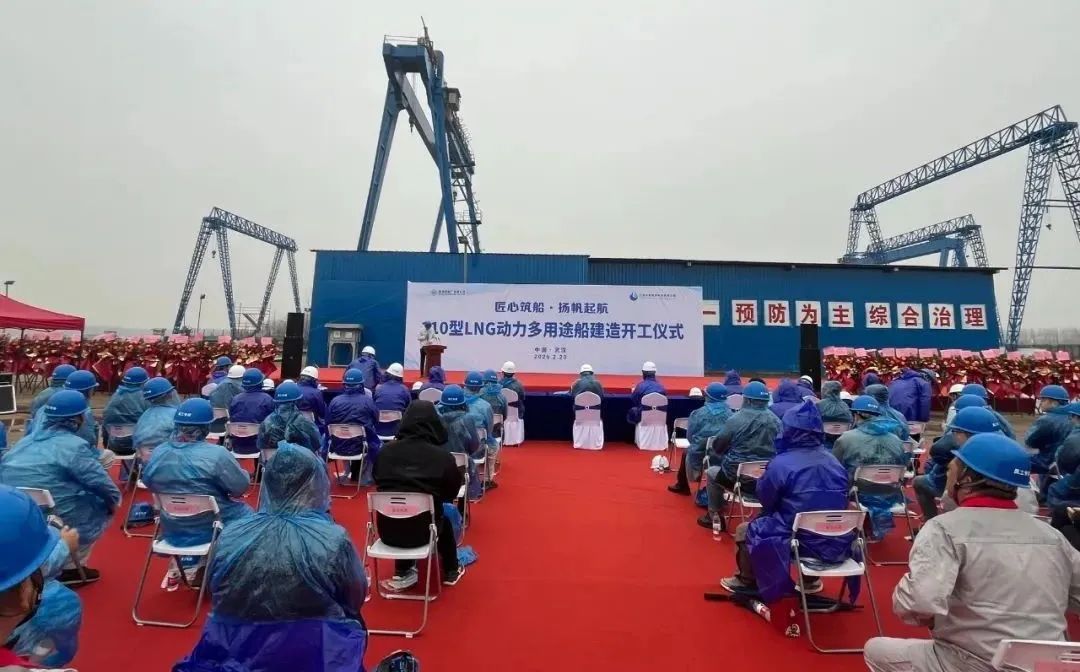 2月20日,三点水新能源批量110型LNG(液化天然气)动力多用途船在武汉经开区建造开工。这也是三点水新能源华中区域总部承接的首个批量订单,建成后,这批LNG动力多用途船将投入长江航运贸易,为区域经济发展注入新动力。