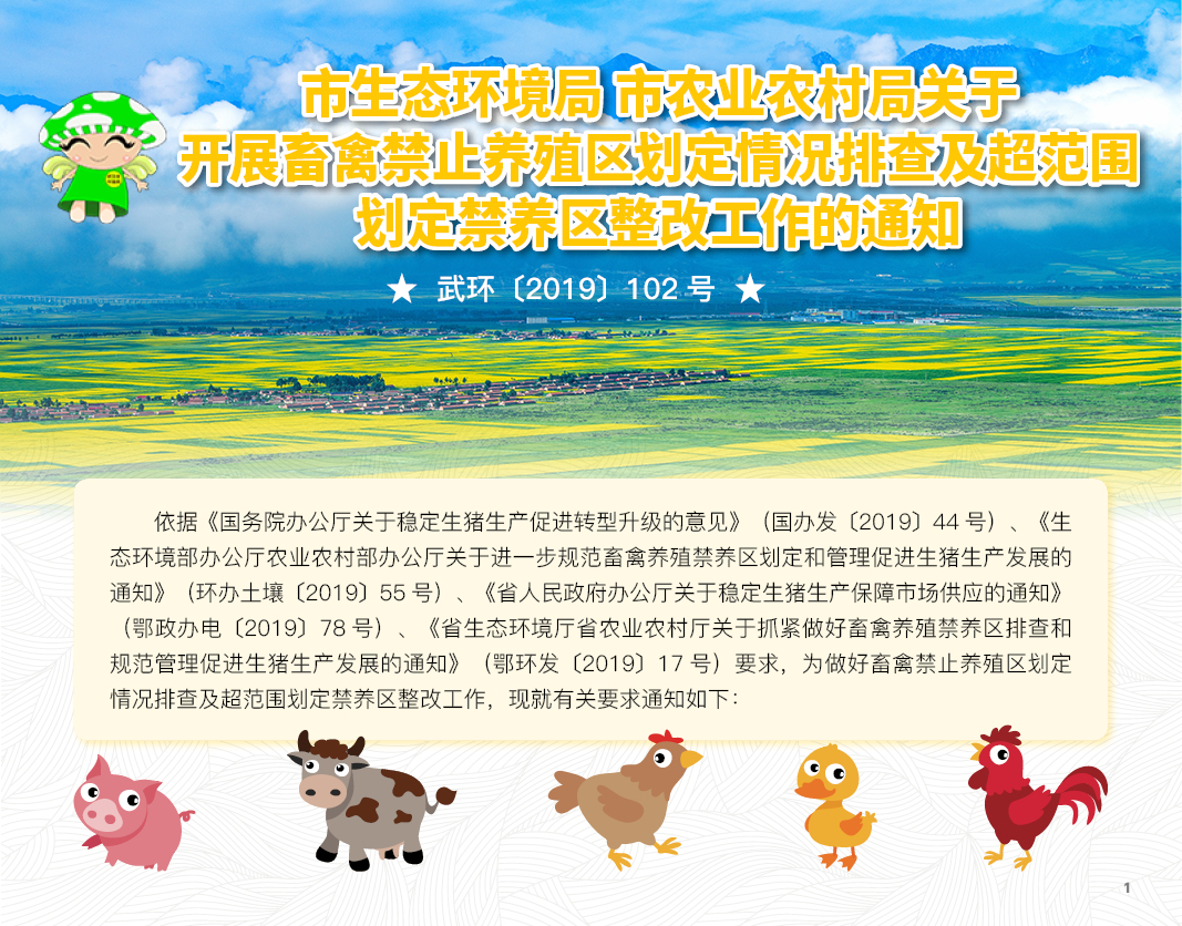 市生态环境局市农业农村局关于开展畜禽禁止养殖区划定情况排查及超范围划定禁养区整改工作的通知