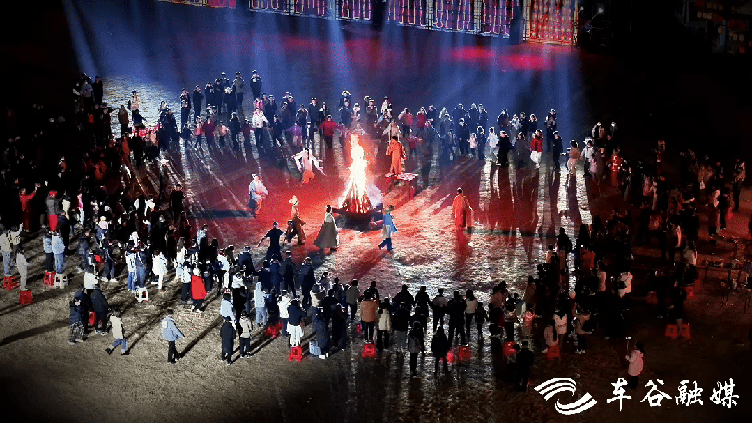 到了主广场,仿佛置身欢乐的海洋。舞台上,唐僧带着大家蹦迪,舞台下,月光女神和悟空草原“相会”,人们点燃篝火、放起烟花,围着篝火载歌载舞,烟花绚烂,照亮夜空。