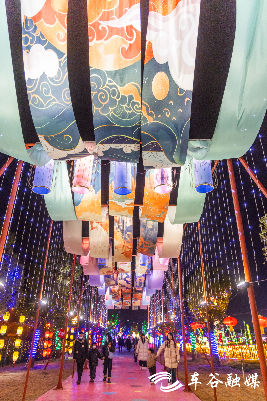 “非遗花灯大庙会由15位来自自贡的花灯匠人耗时三个月建设而成,仅彩灯灯带就用了近50万米。”中润趣谷(武汉)文旅投资管理有限公司总经理张鹏介绍,目前,景区已打造400余组大小灯组和30万方的灯海,“春节趣谷不打烊,来这里不仅可以看到琳琅满目的花灯,还能体验20多种机械游乐设备,30余种各地美食。”