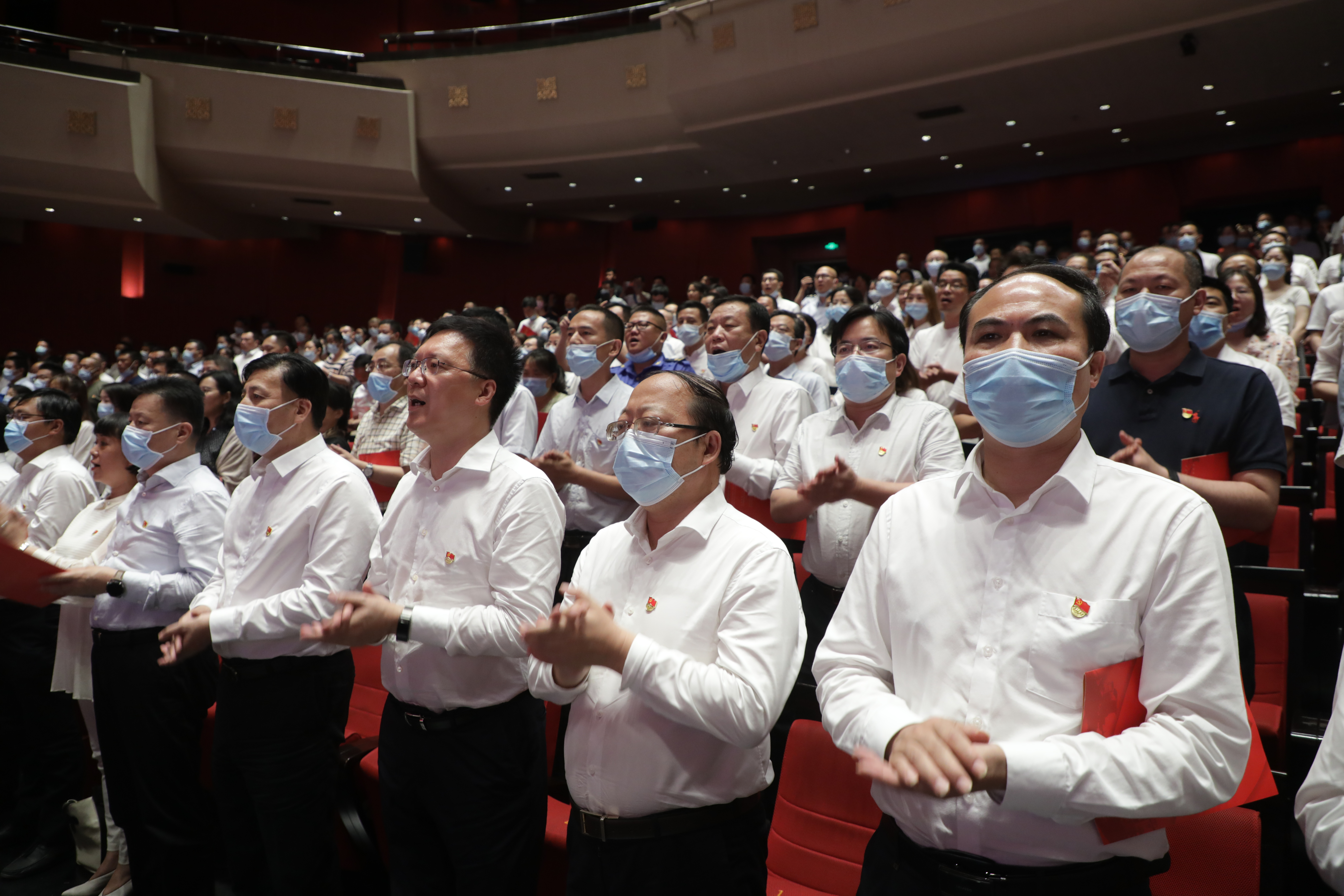 本次演出现场的1000多名观众均为武汉经开区党政机关、园区、街道、企事业单位的党员领导干部,以及基层党组织、抗疫先进个人和集体等代表。