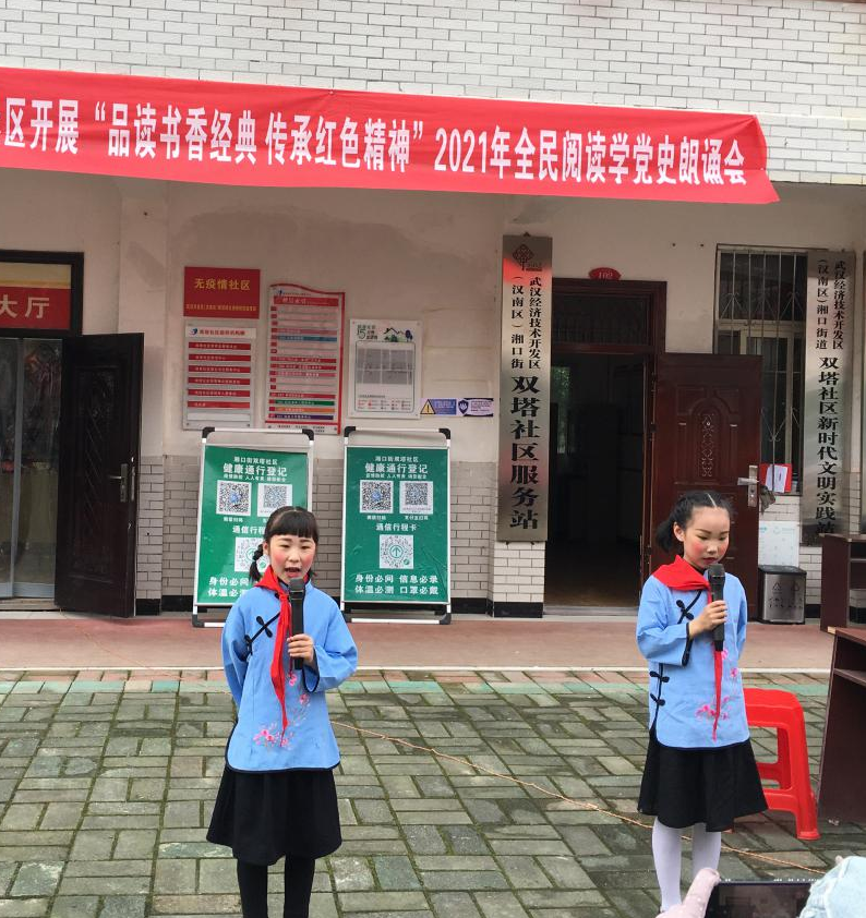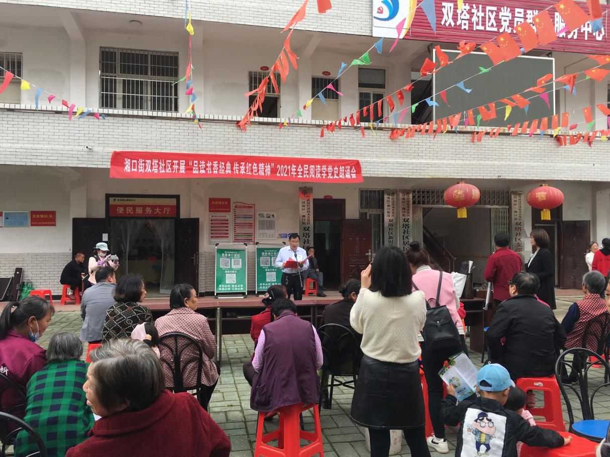 为庆祝中国共产党成立100周年,深入开展党史学习教育,从党史中寻信仰、学精神、促工作,发挥社区图书屋的作用,做好2021年全民阅读工作。近日,湘口街文体站联合双塔社区文明实践站、双塔大队组织党群,开展2021年全民阅读“品读书香经典 传承红色精神”读书朗诵会。