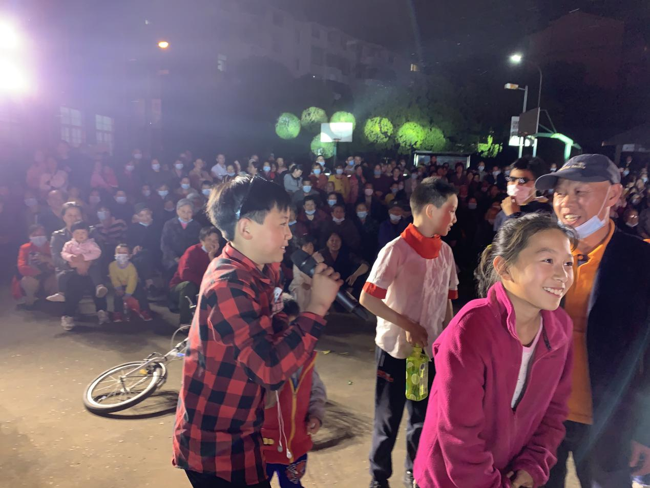 演出中间穿插两轮党史知识、垃圾分类知识的有奖问答环节,引起现场观众学习的小高潮。寓教于乐,将党史教育、垃圾分类知识普及到演出现场,也“搬进”了居民们的心中!