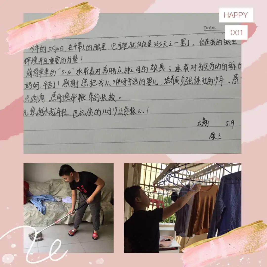 云翔是一名初二的学生,每天看着妈妈忙里忙外,他深深感受到妈妈的辛苦,母亲节,他早早的起来打扫卫生、洗衣服,在给妈妈的手写信中他写道:“妈妈,辛苦了!感谢您把我从咿呀学语的婴儿培养成身强体壮的少年。祝您越来越年轻,也祝您的儿子让您少操心!”