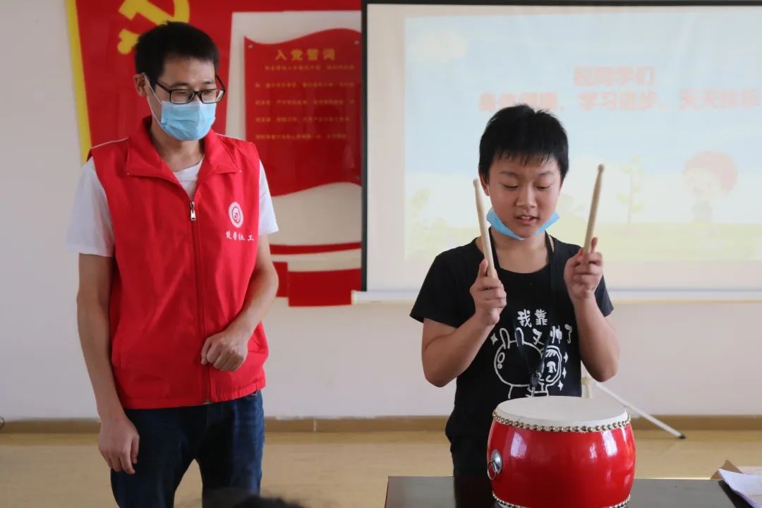 活动最后,社工请在场的每个孩子为自己的新学期定一个成长目标。“我的目标是新学期期末考试英语得一百分”,“新学期我的体育课跑步成绩要进入班级前十名”,孩子们纷纷明确了自己的成长目标,并通过击鼓明志的方式让目标更加坚定。最后,社工为每个孩子送上了精美的文具大礼包,助力孩子们快乐成长。