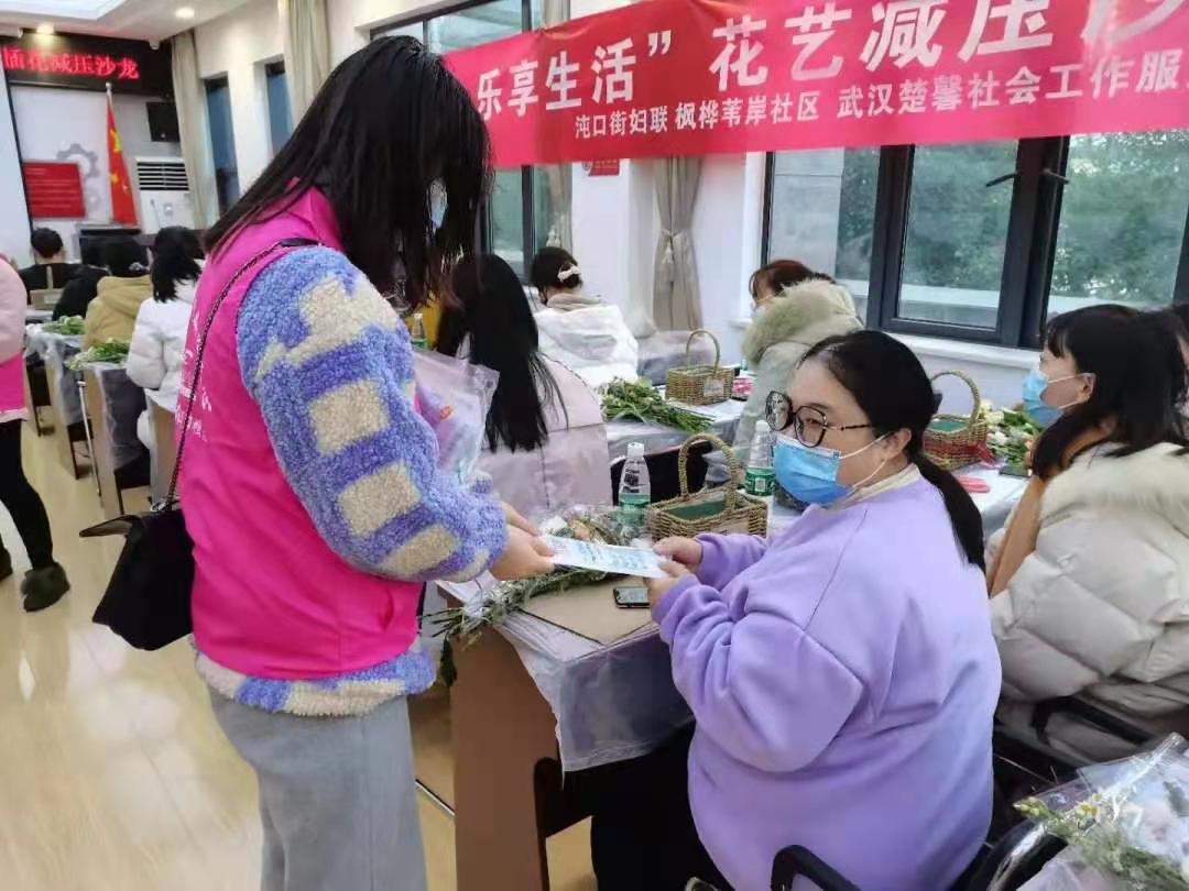 目前,疫情防控进入常态化,冬季流感和新冠肺炎传播风险加大,基层工作人员工作压力增加,本次活动以女性喜闻乐见的插花活动舒缓了基层人员的工作压力,体现了沌口街妇联“娘家”的温暖。