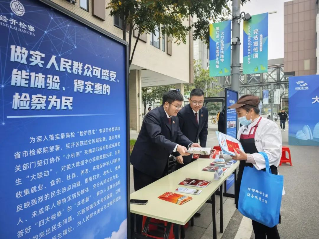 当天,工委政法委、经开区法院、经开区检察院、区公安分局、汉阳海关等15家单位的执法人员、普法志愿者走进园区,现场摆起“普法小摊”,“卖”法律知识“干货”,通过融学于趣,将法治宣传潮流化,吸引了不少市民驻足。