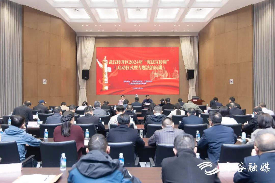 12月3日,武汉经开区2024年“宪法宣传周”启动。工委依法治区办联合区自然资源和城乡建设局举行专题法治培训,泰和泰(武汉)律师事务所秦为径律师以依法行政与执法监督作主题授课,街道、行政执法部门、综合执法中心、综合执法大队约100人参加。此次培训作为“宪法宣传周”的预热活动,全面贯彻落实宪法,强化国家工作人员依法行政意识,推动法治政府和法治社会建设“同频共振”。