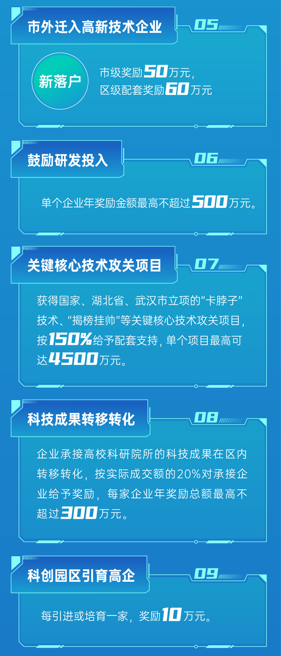 打造科技成果转化高地,武汉经开区不遗余力。7月7日,武汉经开区重磅发布了《关于促进创新创业创造发展助力打造国家科技创新中心33条措施》(简称“车谷科创33条”),这是我区制定的覆盖面最广、系统性最强、支持力度最大的科创政策,每年将拿出不少于8亿元,支持企业科技创新、产业自立自强。