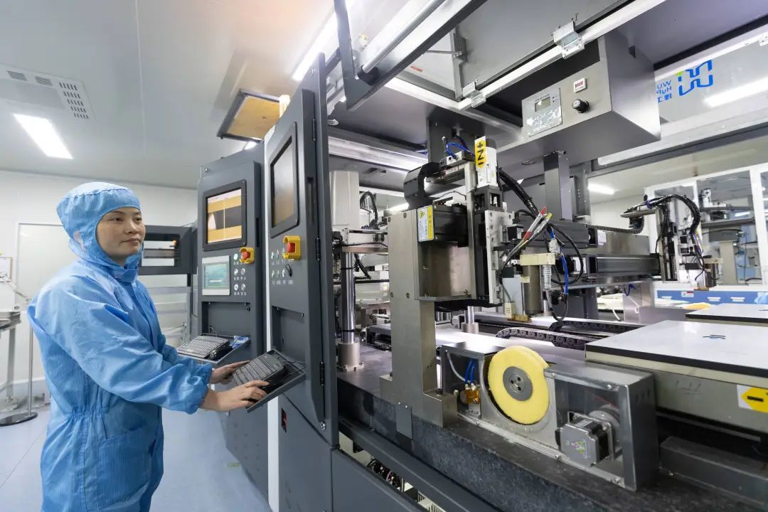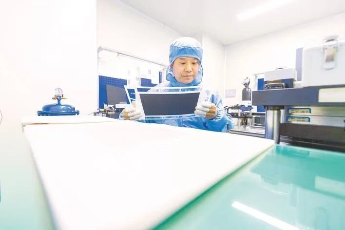 万级无尘车间内,自动化生产线不停运转,一片片薄如报纸的黑色薄膜,来回穿梭、组装、打包,整装待发。
