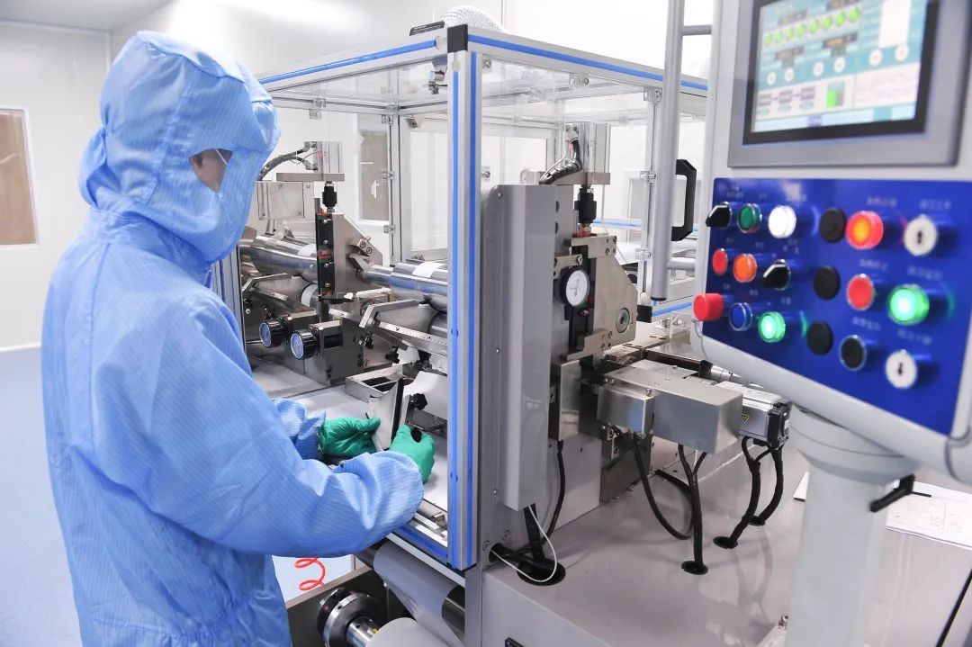 ▲武汉理工氢电科技有限公司无尘车间,工作人员在生产膜电极产品。