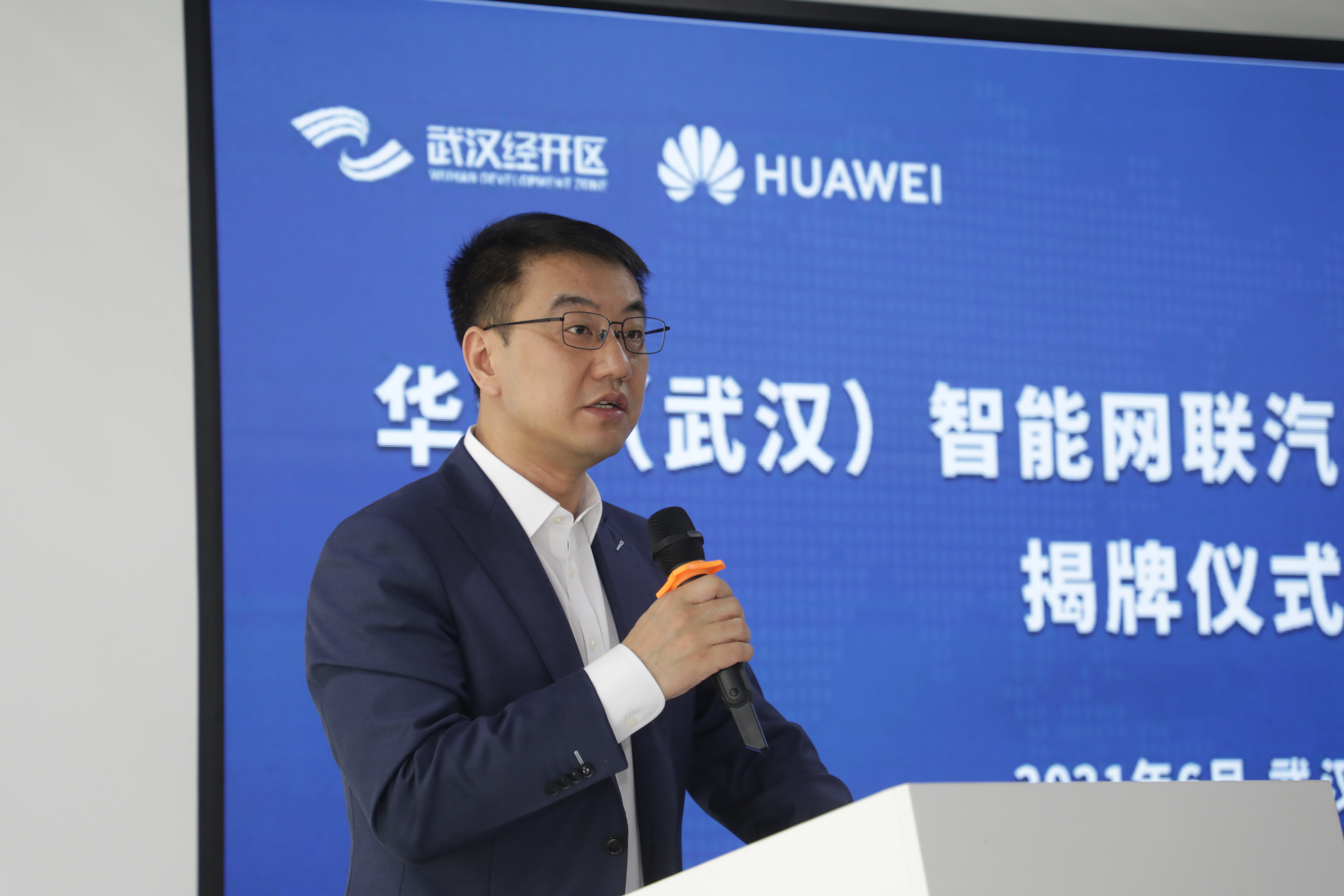 6月21日,华为(武汉)智能网联产业创新中心揭牌。市委常委、武汉经开区工委书记、汉南区委书记刘子清与华为公司湖北省总经理孟少云共同为中心揭牌。