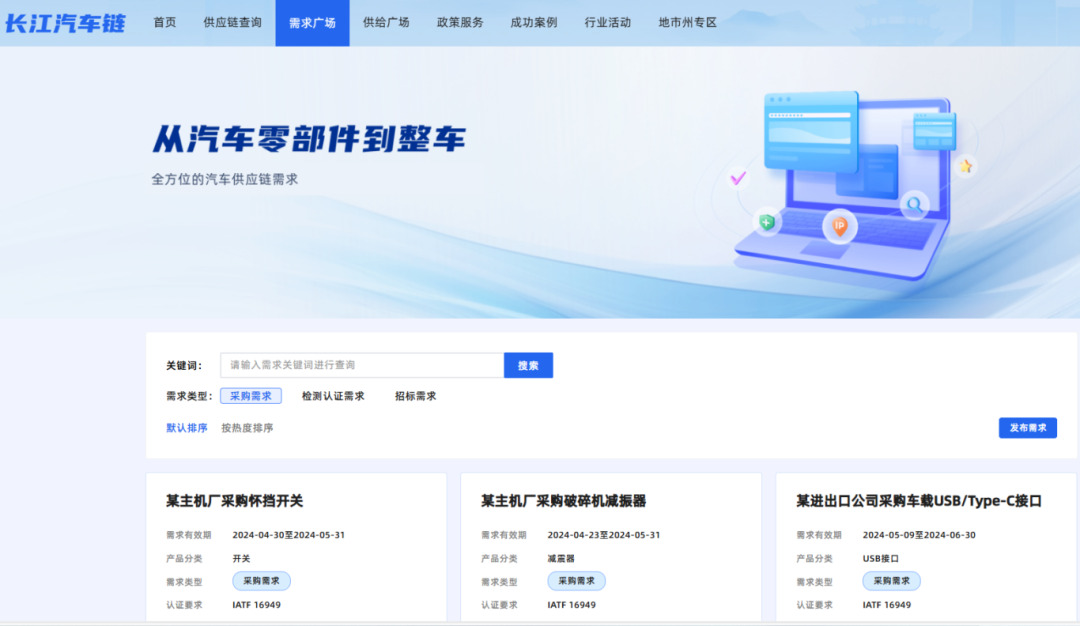 长江汽车链平台设有“需求广场”“供给广场”大板块,为企业提供全方位的供需对接服务。在需求广场,企业可以发布需求华体会平台(中国),平台通过智能匹配,帮助企业快速找到符合要求的供应商。同时,企业也可以在供给广场上发布供给华体会平台(中国),展示产品和服务,方便采购商进行搜索和匹配。这种高效的供需对接方式,有助于提高供应链协同效率,实现资源的高效配置与利用。