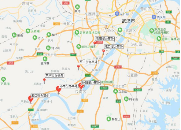 图 2 武汉经开区街道地理位置分布图